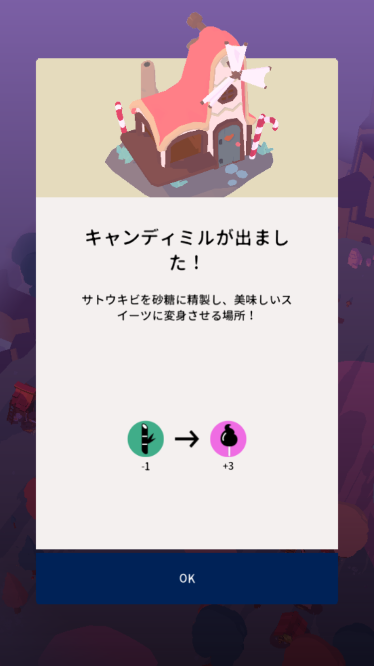 パンとキャンディを300個作るには結構時間が長くかかるため、建築物を作ってから画面を眺めているだけの時間が結構ありました。